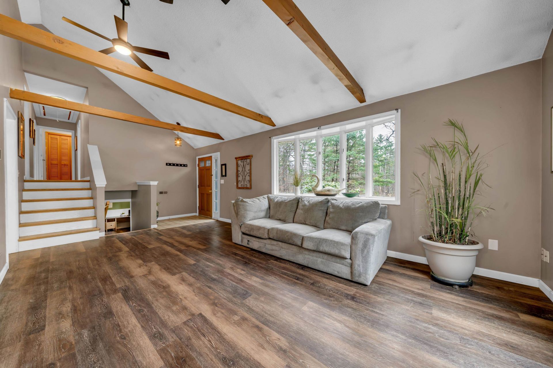 Welcome to 1 Williamsburg Drive, a beautifully maintained tri-level home sits on a 2.2 acre lot offering space, character, and exceptional versatility in highly desirable Amherst, NH. This impressive 3-bedroom, 2.5-bath property provides generous room to spread out, with thoughtful design. Step into the stunning first floor featuring a light-filled family room with soaring cathedral ceilings and exposed beams, creating a dramatic and inviting centerpiece. The eat-in updated kitchen showcases granite countertops and ample cabinetry, flowing into the dining area where a slider opens to the back deck for seamless indoor-outdoor living and entertaining. Upstairs, you'll find all three bedrooms, including a spacious primary suite with walk-in closet and en-suite 3/4 bath with dual vanities and a pocket door adds both style and function, two additional bedrooms and another full bath completes this floor. The daylight basement expands your options with a large recreation room, half bath and dedicated laundry area, ideal for flexible living, remote office, hobbies, or guests. Outside, enjoy a private yard and expansive deck perfect for relaxing or hosting gatherings. A two-car attached garage adds everyday convenience, while forced air oil heat, central AC, and a cozy woodstove ensure year-round comfort. Located in Amherst, known for its top-rated schools, charming historic village, scenic conservation land, and easy access to shopping, dining, and commuter routes, this home offers an exceptional lifestyle opportunity. *Open Houses Sat 4/11 & Sun 4/12 @ 11:00am-1:00pm.
