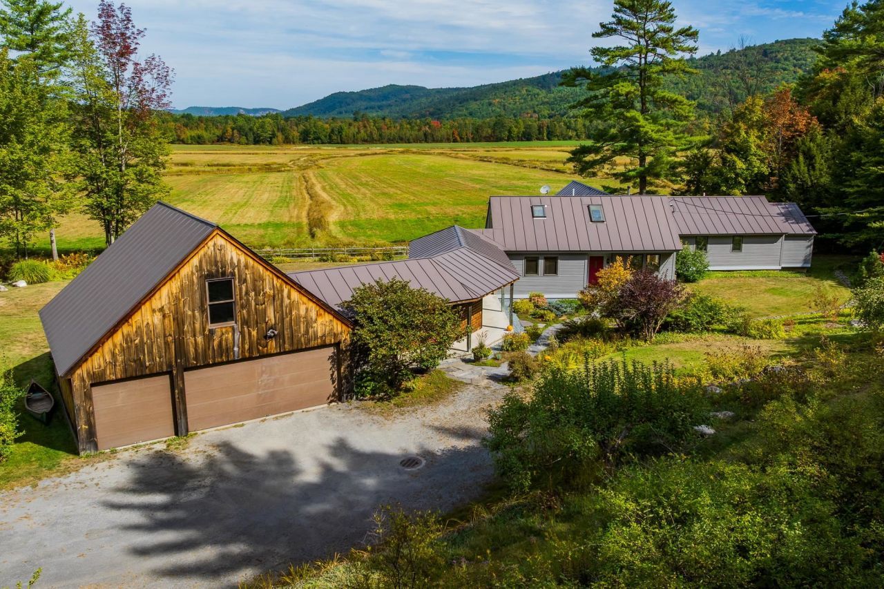 100 NORTH THETFORD ROAD- Updated, impeccably maintained Cape sited on a stunning nearly 4-acre parcel with breathtaking long-range views. The open concept interiors feature vaulted ceilings and effortless flow, designed to welcome abundant natural light and showcase the landscaped grounds, vistas, and abutting conserved land. A well-appointed kitchen with beautiful woodwork and adjacent dining area together with a sizable deck and covered patio make it perfect for entertaining family and friends alike. The living room is both grand and cozy, with built in bookshelves flanking the east side and a propane stove for cooler months. Also on the main level are a large en suite primary bedroom with office area, a second bedroom with a full bathroom, and laundry room. Upstairs is a private loft space and third bedroom accessed from a magical custom wood landing. The walkout lower level offers an additional finished living area-perfect as an office or recreation room-as well as ample storage space. Attached to the house via the lovely breezeway/patio is a newer 3-bay garage barn with a private heated woodshop, and storage above that has potential for conversion to additional finished space. Two Solaflect solar trackers help with annual electricity production. With its comfortable and versatile interiors, stunning grounds and views, and perfect location to access points both north and south, this move-in-ready home has something for everyone.