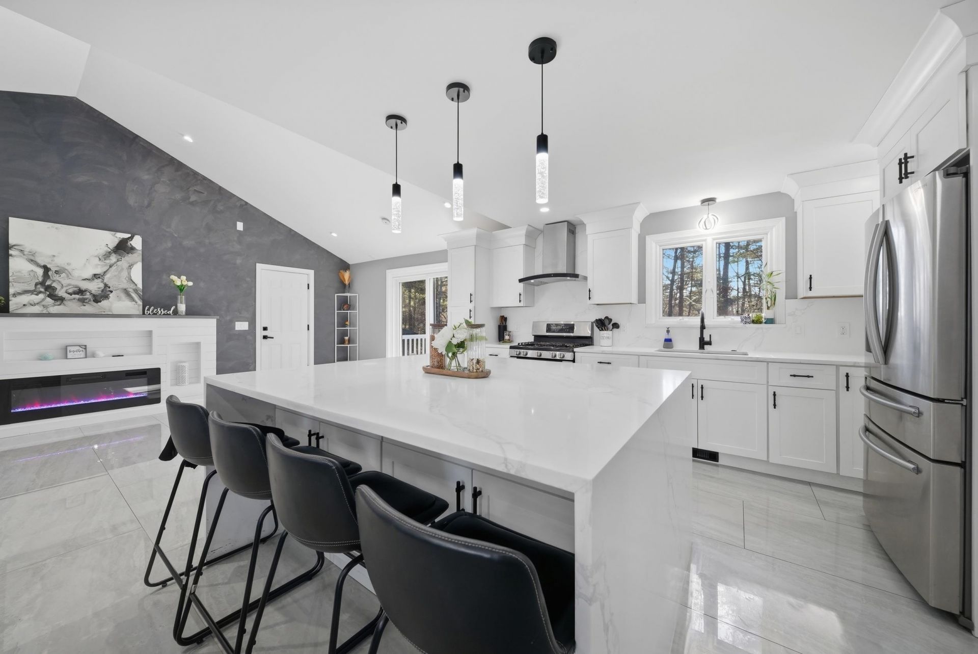 Welcome to 24 Hunter's Lane in Nashua, NH, a beautifully remodeled home located in one of the city's most desirable neighborhoods. From the moment you walk in, you're greeted by a stunning open-concept layout where the gorgeous kitchen flows seamlessly into the main living area, highlighted by soaring cathedral ceilings that fill the space with natural light. The kitchen is truly the heart of the home, featuring an oversized island with quartz countertops, perfect for entertaining, along with a dedicated coffee bar area that adds both charm and functionality. The main level offers a spacious layout with a living room, dining area, and a full bathroom, all thoughtfully updated. Upstairs, you'll find four generously sized bedrooms and a fully remodeled full bathroom, providing comfort and style for the whole family. The semi-finished basement offers endless potential, whether you envision a home gym, office, playroom, or additional living space, the possibilities are yours to explore. Step outside into your own private oasis. The fully fenced-in yard is ideal for entertaining, complete with a patio, a newer above-ground Gibraltar pool, and a hot tub, creating the perfect setting for relaxing or hosting unforgettable gatherings. Additional highlights include an oversized two-car garage, central air conditioning for year-round comfort, and plenty of space both inside and out. Conveniently located less than five minutes from Whole Foods, shopping, restaurants, and major highways, this home combines modern living with unbeatable accessibility. A truly move-in ready home with space, style, and location, don't miss this opportunity! Schedule your showing today!