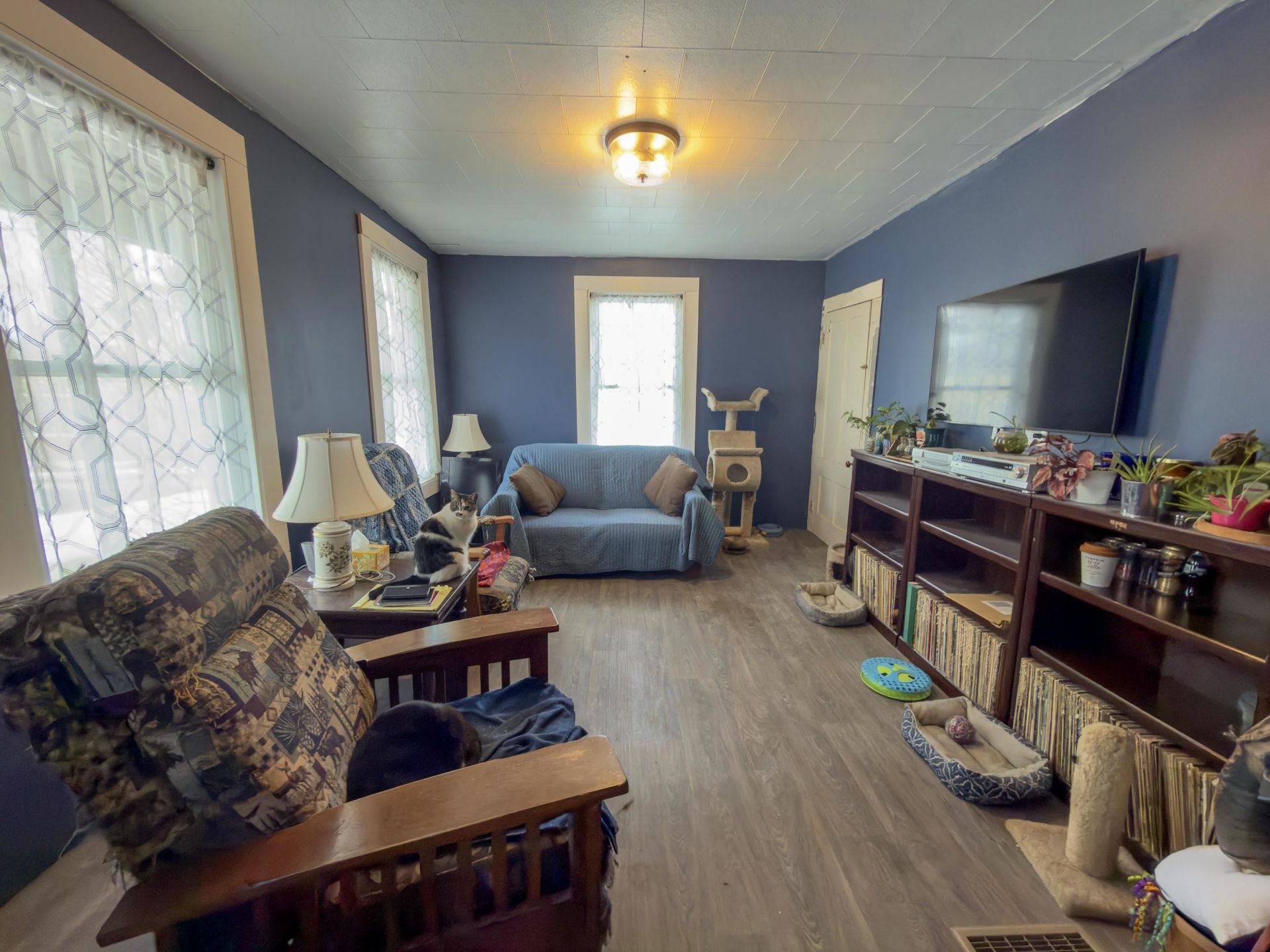 Extensively renovated multi-unit duplex offering strong owner-occupant or investment potential with exceptional garage, storage, outdoor space, and a convenient in-town location. A major highlight of the property is the attached oversized 2-bay garage, offering ample room for 2+ vehicles, workshop space, and hobby or equipment storage, plus a full second floor above the garage for excellent storage, workspace, or future flexibility. Set on a level .33-acre corner lot with frontage on two roads, including one side bordered by a dead-end road, the property enjoys a quieter section of town with sidewalk access on Ammonoosuc Street and is within walking distance to downtown Woodsville while still away from the main flow of traffic. The flat yard provides plenty of usable outdoor space, plus a camper clean-out hookup to the septic system for added convenience. Both units have seen extensive interior renovations in recent years and feature separate utilities, including newer 200-amp electrical service with individual meters, new PEX plumbing with individual water meters, separate heat, newer 38-gallon electric hot water tanks in each unit, newer Pella double-hung windows, newer garage doors, electric door openers, updated sheetrock, paint, and new R-13 wall insulation, with added R-19 insulation in the main-floor primary bedroom. The first-floor owner-occupied unit offers approximately 1,181 SF with a large storage room, kitchen, formal dining room, formal living room, 3 bedrooms, 3/4 bath, private laundry, and appliances included. The second-floor unit has a private entry, 883 SF, private laundry, full bath, separate dining and living rooms, and 2 bedrooms. Tenant has been in place for 2 years, is now month-to-month at $1,200/month plus all utilities, and provides their own washer, dryer, electric range, and refrigerator, helping reduce owner expense and appliance responsibility. Unfinished third floor has flooring in place for future potential.