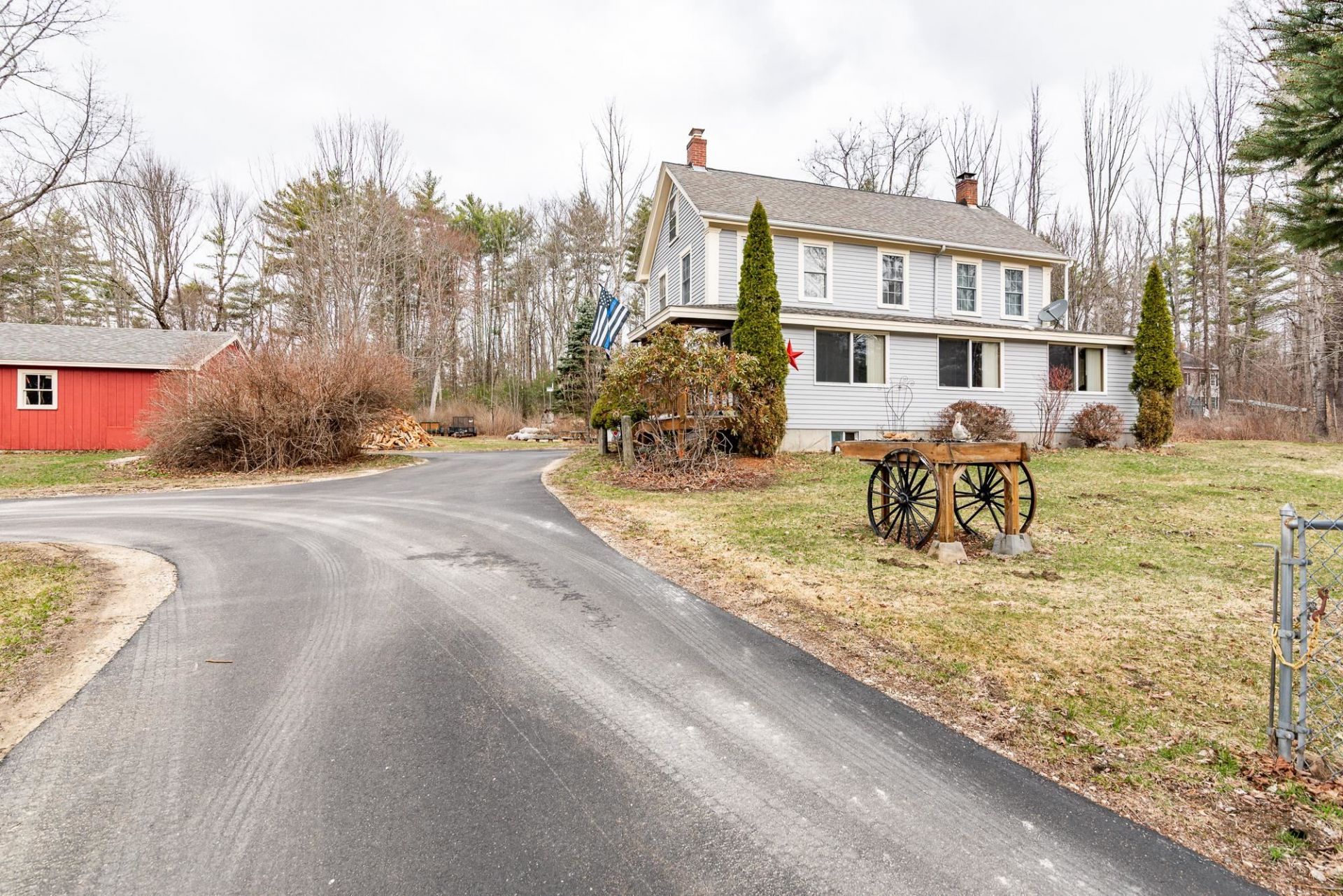 1851 colonial farmhouse teeming with charm and character featuring a country kitchen with a soapstone sink and the original fireplace with a woodstove insert. Unique layout with several flex rooms that can be adapted to your needs as bedrooms, offices, dens, family rooms, or game rooms. Numerous built-ins throughout the home. Beautiful 3-acre lot with an expansive lawn, a variety of mature trees and flowering shrubs, finely weathered stone walls, perennials, and a small pond. Hot tub, above-ground pool with deck, screen house with power, and a fire pit also included. Plenty of storage with a 2-car garage, metal storage building and a shed. A short stroll to Ayers Lake. Conveniently located on Route 202 and set well back from the road. BONUS: heat your home free for three years with approximately 12+ cords of split wood. Open houses on Saturday, April 11, 10am - 1pm, and Sunday, April 12, 10am-noon.